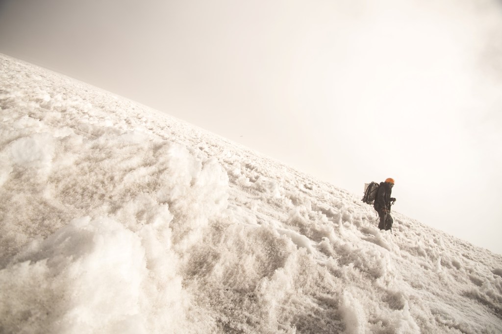Otro puntito muy veloz acaba de pasar glaciar arriba, con apenas un par de bastones, tratando de hacer cumbre y de bajar al pueblo de Hidalgo en cuatro horas. Es Santiago Carsolio. Su colega Max Álvarez, trailrunner como él, aparece vestido como quien entrena en verano por la playa. Ha subido como apoyo y mientras tanto observa los trabajos del equipo, pero enseguida se despide porque su amigo vuela montaña abajo. “Creo que correr montañas es mi medio de convivir con ellas”, decía Carsolio, la víspera, en una cabaña de Hidalgo. “Pero el cambio de los glaciares es impactante. Acabo de ir al Iztaccíhuatl (5.215 metros) después de seis años, y el de Ayoloco no lo reconocía”.